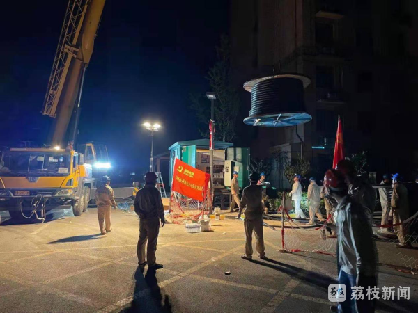 经过仔细查看,抢险队迅速制定了应急临时供电方案:小区整体由9栋楼组成,计划分3个区域安装3台箱变,1600米的电缆则由人力进行拖拽至不同楼栋。此时箱变已经调拨到位,但所需电缆还在路上。