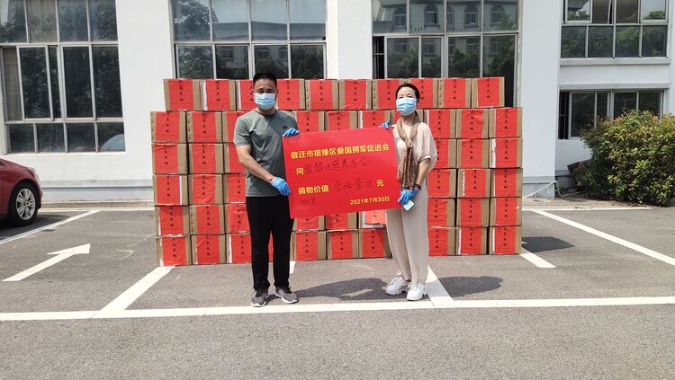 7月31号下午,宿豫区爱国拥军促进会采购65箱价值11万元消毒液捐赠给区慈善总会,委托慈善总会分发给疫情防控一线人员。