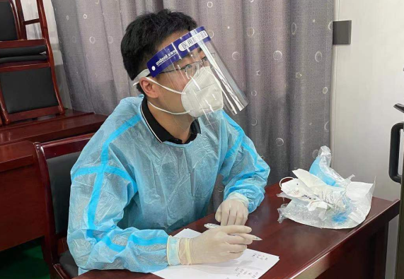 李世聪说:“在工作中,我第一次穿上防护服,戴上橡胶手套,那一瞬间就感觉整个身体靠近了熊熊燃烧的火炉,汗水不停地流淌,我感受到了医护人员的不易和辛苦。在工作中,小到几个月大的婴儿,大到九十多岁的老人,有孕妇,有拄着双拐的残疾人,大家积极配合,真的很让人感动。”