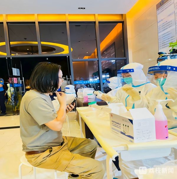 在诚基大厦,桑伟所在的核酸采样点仅有三个采样小组,身着白色防护服在闷热的环境中连续工作7个小时,但工作人员不怕苦不怕累,没有一人退缩,期间有市民朋友给他们送去冰镇饮料,当核酸检测工作快结尾时,饮料全部变成常温了。