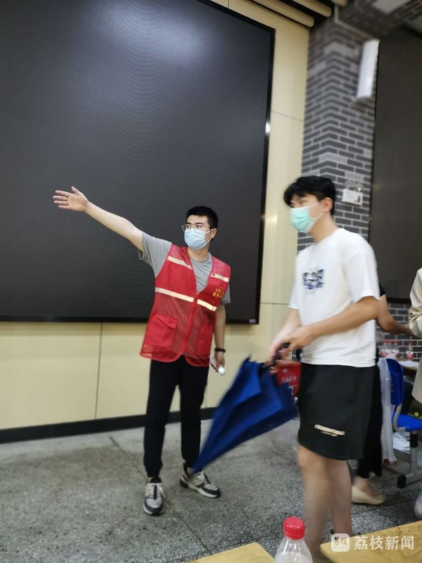 7月25日下午6时,贺留杰匆匆吃完饭后便赶去志愿服务点报到。那天,台风“烟花”登陆南京,晚上下着暴雨,在这种天气下,南京市民撑伞排队等待核酸检测,有序配合工作人员监测体温。而贺留杰则从晚上七点坚持到了凌晨一点。