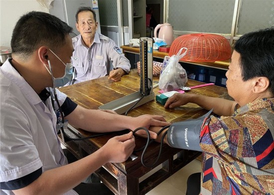 在江苏省淮安市金湖县戴楼街道牌楼村,70岁的刘序兰正坐在家中吹着风扇纳凉,一抬眼便看见村卫生室的医生进门来了。医生为刘序兰测量了血压,并询问了用药情况,开具了诊断书,指导她科学用药。足不出户就能免费享受到专家医生的诊治,刘序兰高兴地咧嘴笑了,“医生上门免费服务,还给我们带来了日常用药,真的太感谢了。”