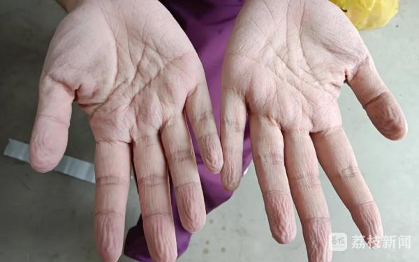 “爱心”大白温暖了一座城,而这身“温暖”的防护服下,是他们湿透的衣衫、压红的脸蛋、磨破的鼻梁,泡白的手掌。