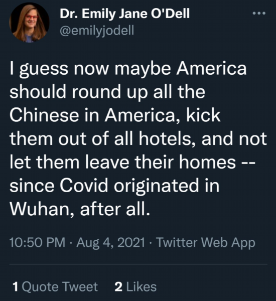 然而,这么一名在美国属于“高级知识分子”精英人士,却不仅拒绝配合中国地方政府的防疫政策,甚至还为了宣泄自己的不满情绪,在境外的社交媒体上发布了极为恶毒的种族主义言论。