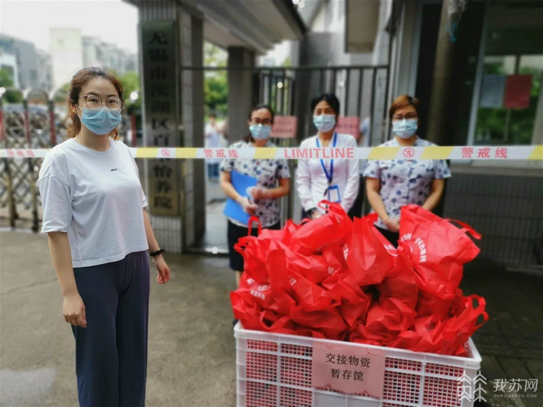 8月13日,一场“互不见面”的特殊慰问活动在滨湖区社会福利中心门口举行。来自企业的志愿者,将一箱箱牛奶、饼干、绿豆粥等爱心物资搬下车,不举行仪式,不进院慰问,所有爱心物资在门外办理简短交接。