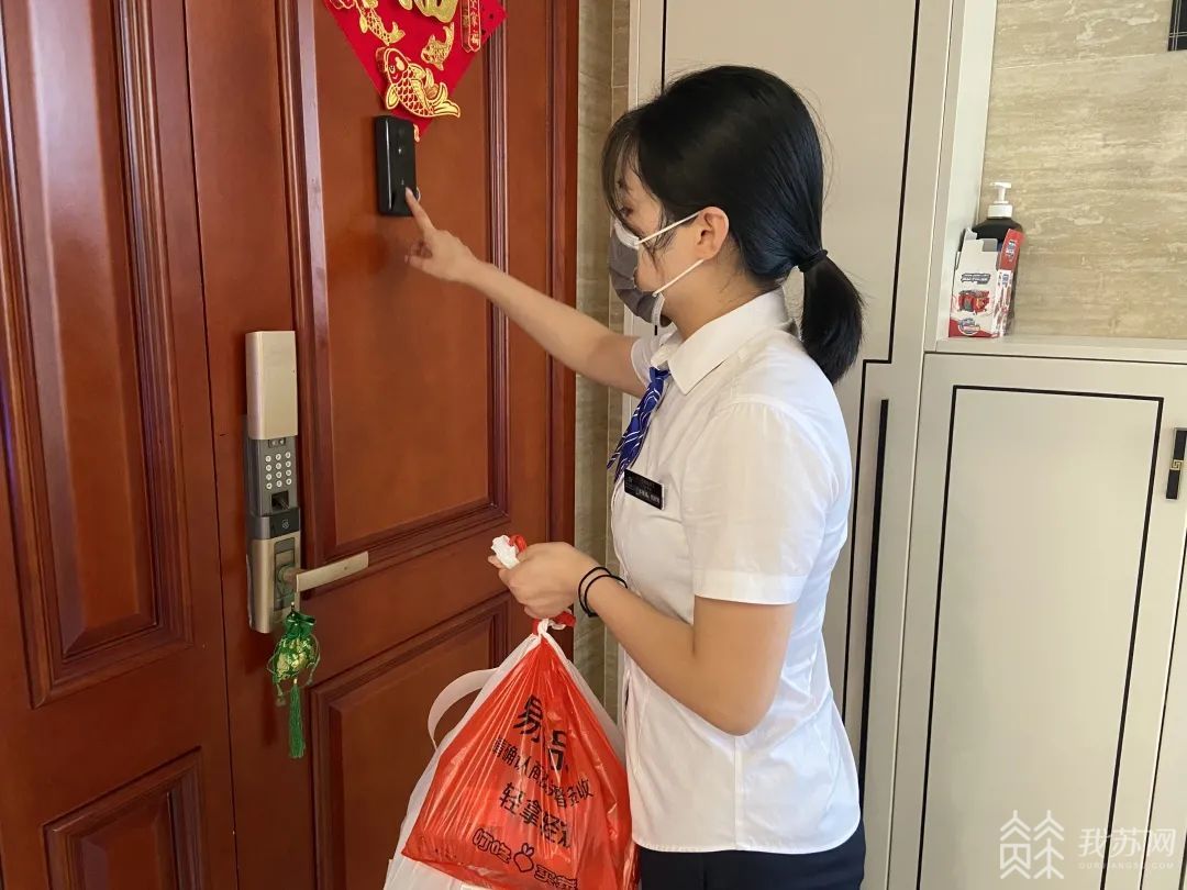 获悉该情况后,正在休年假的蠡溪社区商品房蠡湖院子客服管家钱停停,毅然选择销假回单位,和大家一起并肩作战。为了最大限度减少人员接触,管家钱停停当起了小区“快递员”,为有需要的居民提供“送货上门”服务。小区正在进行居家检测的居民购买快递和外卖,都由管家钱停停负责从门口领取后送到家门口即使是在下班后,有业主联系,她也会在看到信息的第一时间安排值班人员送上门。