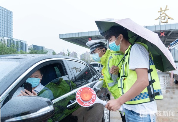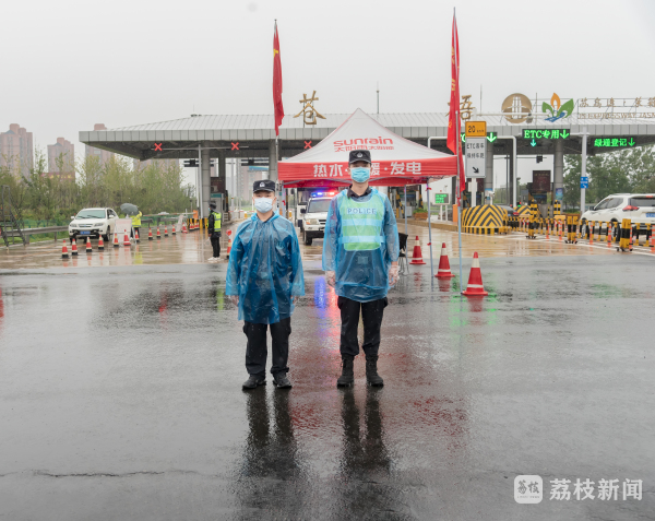 我苏网讯 查看行程码与健康码、测量体温……8月20日,在G25长深高速连云港市苍梧收费站,一抹抹“荧光绿”穿梭在雨中忙碌着。