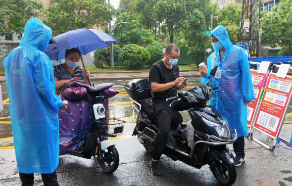 宣静口中的卢队是海州区城管局机动队一员,他正在卡口值守,忙着为过往人员测温验码,胳膊上满是豆粒大的汗珠,衣服也已经汗湿。说起那些“辛苦”,他摆摆手,轻描淡写地说:“这不算什么,我们是疫情防控‘2+8+N’志愿服务体系的一份子,既然来到社区就是要干活做事的。”当谈及家中情况,他沉默了会儿,感慨说对不起孩子。“我天天在社区,我老婆在医院,就一小孩子在家,我们只要加班就得给小孩点外卖,心疼但是没办法。”卢波的妻子刘艳是连云港市妇幼保健院静配中心的医护人员,夫妻俩同在防疫一线,顾得了“大家”就难免顾不上“小家”。