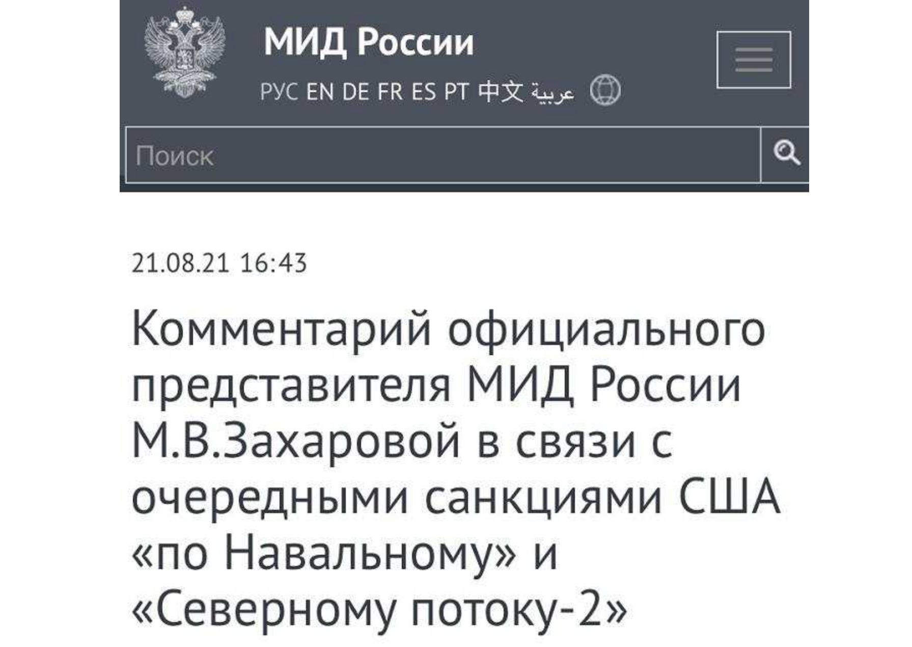 当地时间8月21日,俄罗斯外交部在官方网站发表声明,批评美国对俄新一轮制裁。