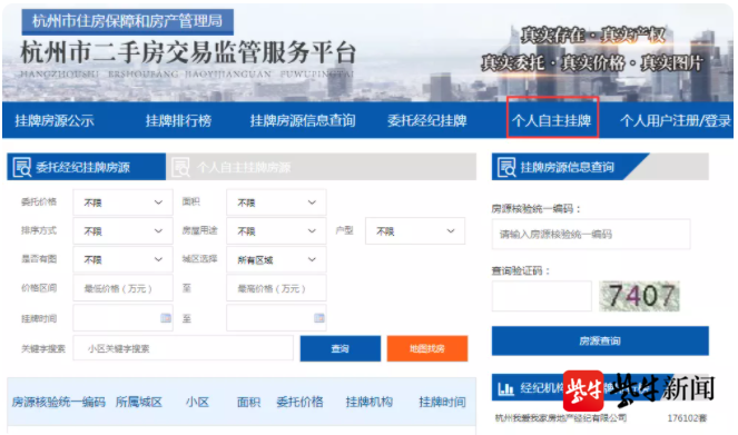 扬子晚报/紫牛新闻记者登录该平台发现,售房者首先要完成实名注册后,在线填写房屋信息、房屋权属状况及权利人基本信息,完成房源自主挂牌。购房者实名注册后,即可在“挂牌房源公示”栏内查询个人自主挂牌房源和委托经纪挂牌的房源,再通过搜索价格、面积、户型、城区等条件,锁定心仪的房源。值得一提的是,所有房源均经过杭州房管部门的核验,具备唯一的房源核验统一编码及二维码,以确保产权的真实合法有效。