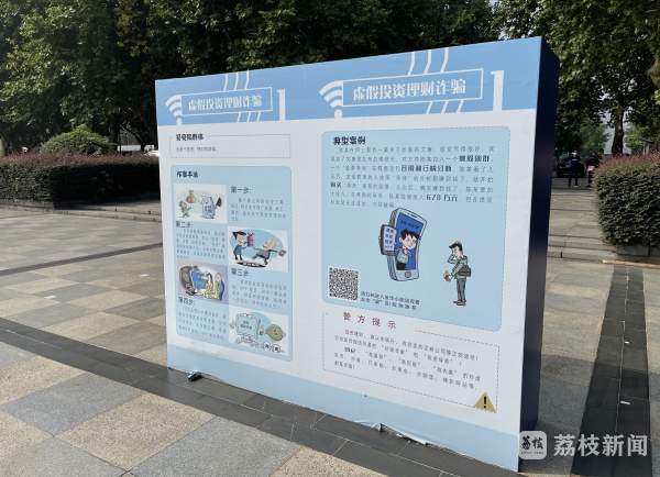据了解,为了让市民在寓教于乐中牢记反诈知识,该主题公园在中心广场设置了8面印有当前最突出电信网络诈骗犯罪手法的“展架墙”,以“文字+漫画”的形式展现各类诈骗手法易受骗群体、作案手法、典型案例和警方提示,市民还可通过扫描二维码进入反诈小剧场观看反诈视频。