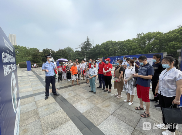 22日上午,无锡市首个反诈主题公园在无锡体育公园内正式建成,不少晨起锻炼的市民被民警形式丰富的反诈宣传所吸引,健身之余还能提高反诈意识。