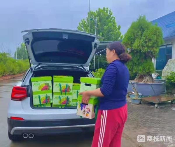 我苏网讯 8月21日一大早,在连云港市海州区锦屏镇陶湾村葡萄种植园,门口停放着三辆等待收购葡萄的货车,而一旁的农户们则忙碌地往礼盒里装入刚采摘下来的葡萄,这一箱箱鲜亮剔透的葡萄将很快送往市内的各大商超,为市民送去秋天的“甜蜜”。