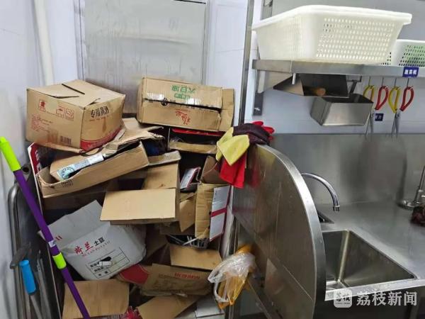 在检查中也发现了不少问题,仓库内大米开包使用时未及时加盖;清洁操作区,清洁工具使用完未及时归位;粗加工区,脱包的外包装未及时清理。