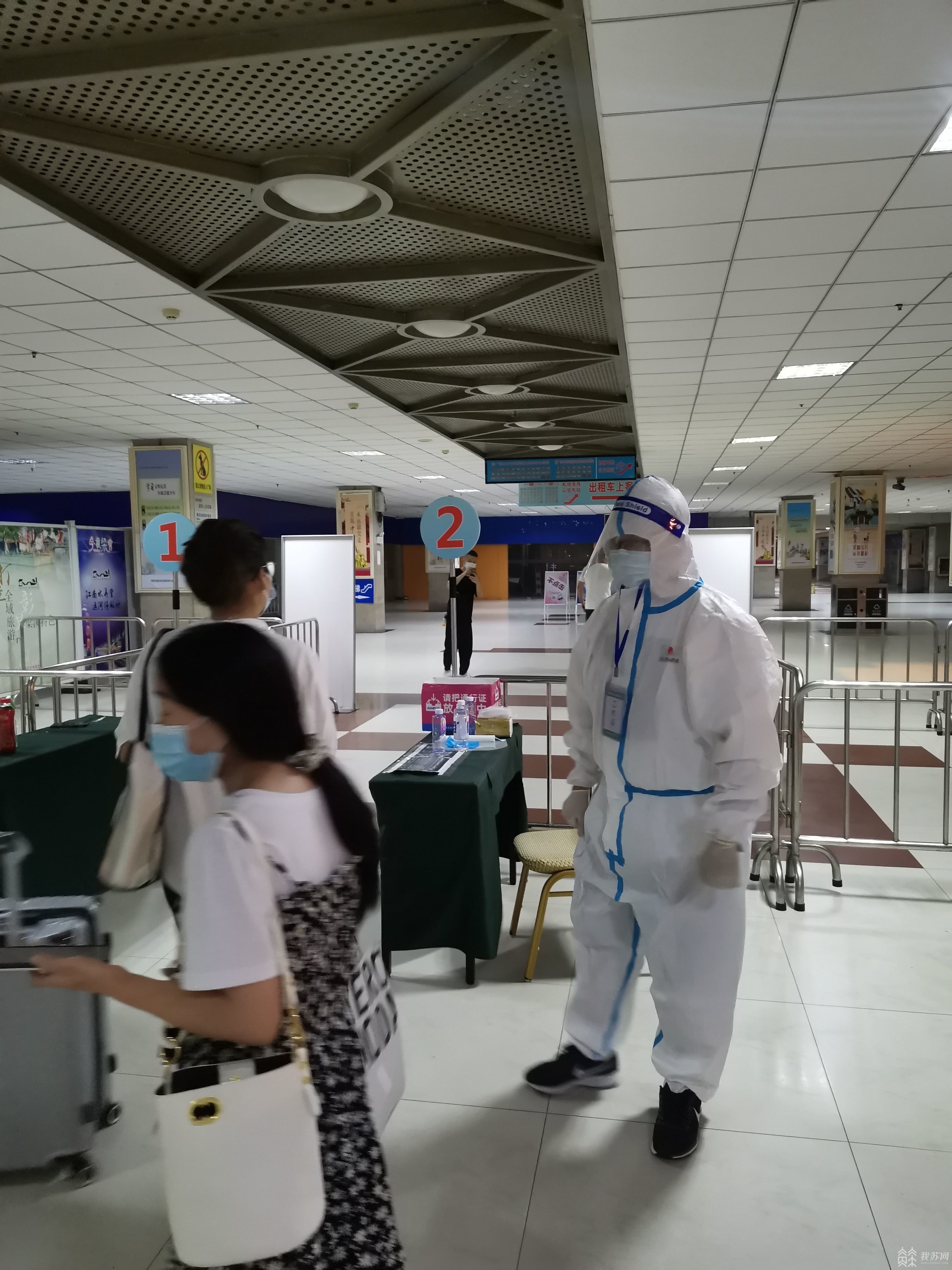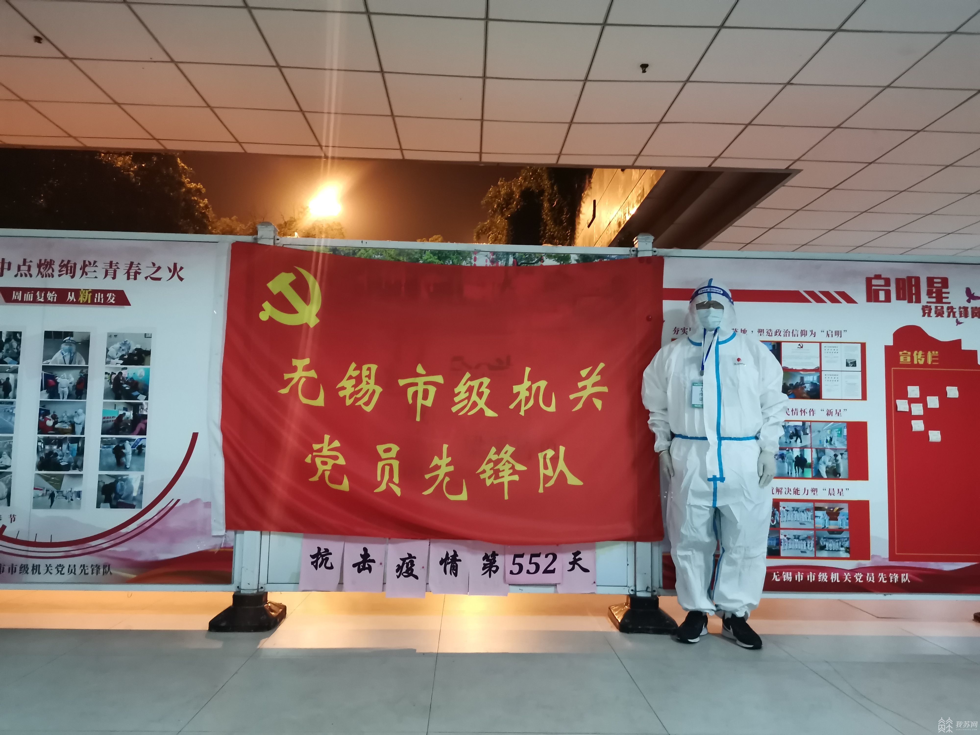 在无锡市火车站有一面鲜红的旗帜“无锡市级机关党员先锋队”,施超就是先锋队的一员,三伏天,既要克服身着厚厚的防护服带来的闷热,又要克服夜间值班来袭的一阵阵睡意。在深夜12点到凌晨6点,他保持高度的专注,负责引导从无锡火车站南广场出站的旅客进行行程码的核验,确保每个出站乘客都遵守防疫措施戴好口罩,督促中高风险地区的乘客进行核酸检测或进行转运隔离。