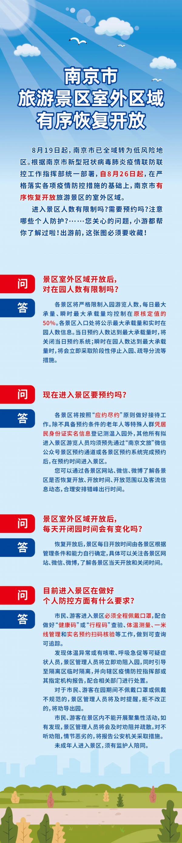 8月26日起南京市旅游景区室外区域有序恢复开放