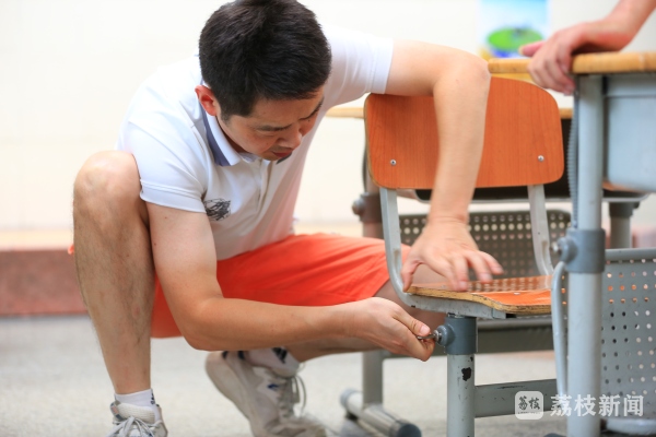 在南京市朝天宫民族小学,工作人员正在调试课桌椅,学校校长李万青介绍,每年暑假归来,孩子们身高变化都挺大。“每年暑假之后,孩子们身高都有变化,有两个年级变化比较大,二升三年级,孩子的身高长了3~5厘米,变化最大的是五升六年级,平均长了5~10厘米,我曾经看到有的小孩到六年级的时候,他来上学长了12厘米。只有让孩子有良好的坐姿,良好的学习习惯,尽量减少他们视力下降的可能。”