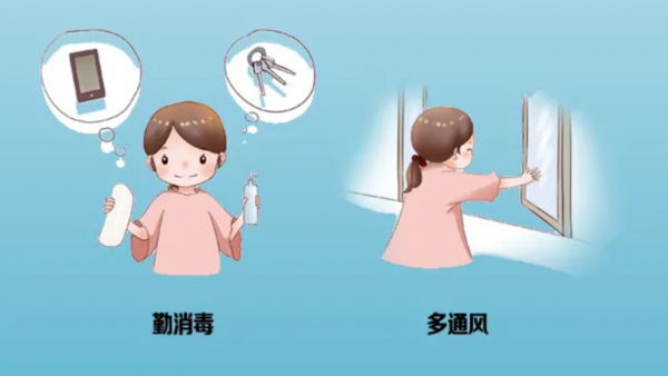 ●下班回到家中,摘掉口罩后首先洗手消毒。手机和钥匙使用消毒湿巾或75%酒精擦拭。居室保持通风和卫生清洁,避免多人聚集。