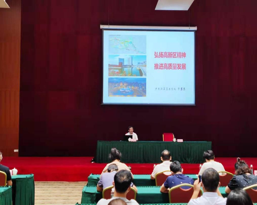 为使党史学习教育更接地气、更见实效,让党员干部更加深入了解所在地区的党史、发展史,无锡高新区党政办公室将学好高新区历史、传承高新区精神作为党史学习教育的一项重要内容,以“弘扬高新区精神 推进高质量发展”为主题,邀请党史学习教育区委宣讲团成员、区委党校常务付校长卞惠忠,为全体工作人员讲授专题党课。