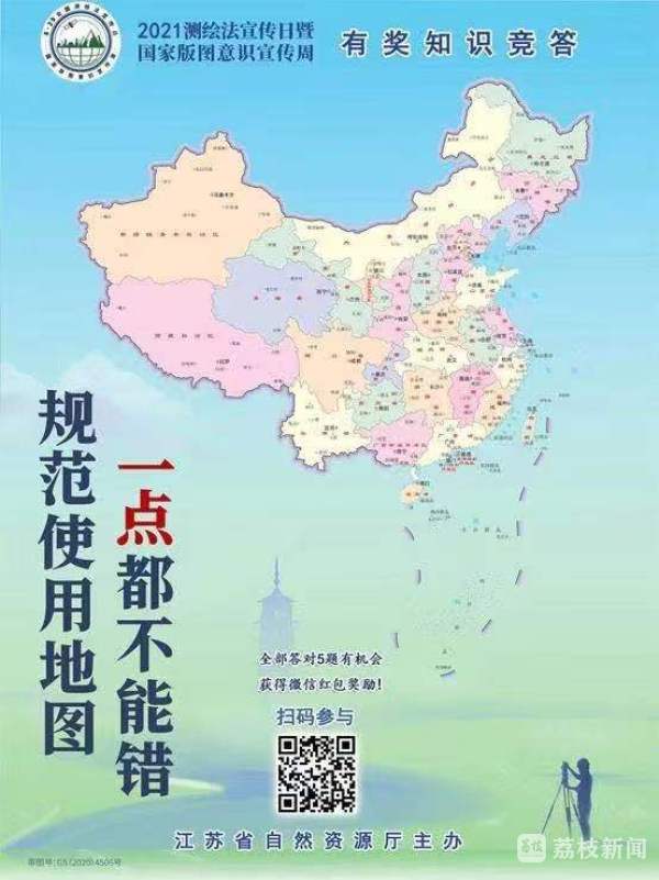 今年8月29日是第18个全国测绘法宣传日,今年的宣传主题是“规范使用地图,一点都不能错”。近日,记者从江苏省自然资源厅了解到,在强化落实疫情常态化防控工作的同时,该厅开展了测绘法宣传“七个一”系列活动。通过绘制一张电子海报、拍摄一支宣传视频、举办一个专题讲座、组织一次竞赛答题、开展一次宣传展览、设计一次地铁专题宣传、编印一本知识手册等多种形式,在线上、线下多个渠道向公众展示了新时代的测绘画卷,进一步深化了全社会对测绘事业的认识与理解,强化了公民的国家版图意识,营造了良好的法治宣传氛围。