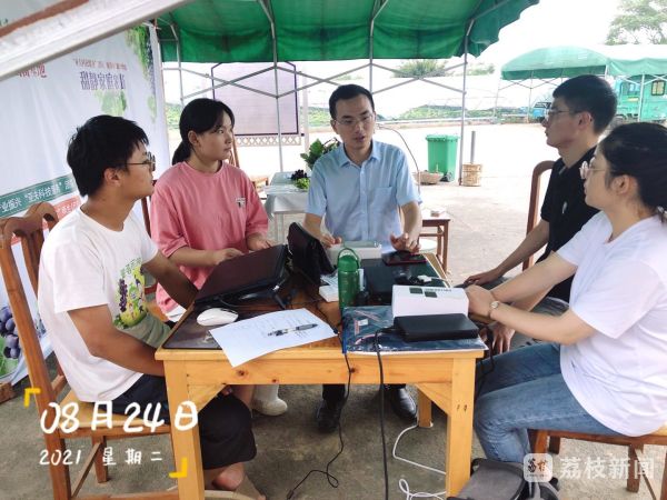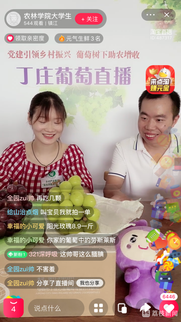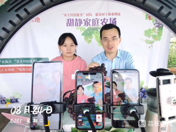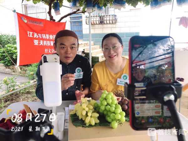 “不是所有的葡萄都叫丁庄葡萄,我们丁庄葡萄是‘国家地理标志保护产品’,获得了‘国家农产品地理标志’证书,串串饱满、粒粒香醇、颗颗香甜,是无公害食品,孕妇都可以放心食用,……”江苏农林职业技术学院张鸣峰副教授不是在上课,而是在葡萄架下为农户公益直播。这是张教授的直播秀,以往他作为当地有名的电子商务专家,常常是忙碌在幕后。而今年暑假,作为学院“亚夫科技服务团队”的驻村专家,他和同事们一起在句容丁庄开启了公益助农行动。