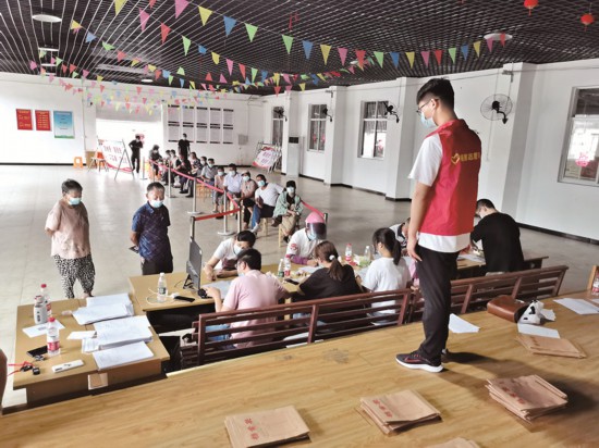 在镇街园区的积极支持和配合下,8个工作组实行“5+2”“白加黑”工作制度,轮番奔赴各农村社区,“一对一”给村民办理登记发证服务。