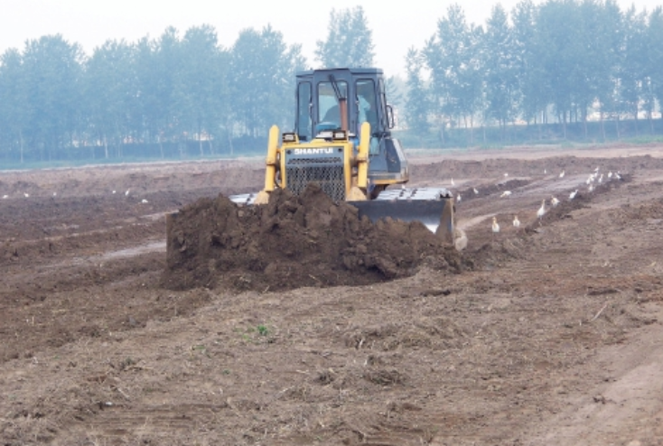 江苏响水县运河镇大通村位于废黄河滩上,占地1269亩,分布了9个村民小组,近400户农户。由于土地高差达100多厘米,加之设施不配套,旱不能灌,涝不能排,其中只有1/4的地块一年只能收获一季庄稼,还是“望天收”。今年该县借高标准农田项目实施的契机,把对这块地的改造作为为民办实事的举措之一。截至目前,已动土近30多万立方米。通过完善的配套设施,将建成旱涝保收的高标准粮田。图为大型挖掘机在项目现场施工作业。