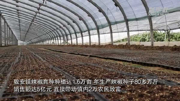 近日,江苏沛县敬安镇,正值辣椒种子收获的季节,田间地头一片忙碌景象。辣椒育种作为敬安镇的特色传统产业,有近50年的发展历史。该镇的辣椒育种基地采用电力地热丝控制土壤温度,用大型排气扇控制环境温度等措施来提高辣椒种子质量。敬安镇辣椒育种种植达1.6万亩,是全国辣椒育种集中度最高、品种最多的基地,年生产辣椒种子80多万斤,销售额达5亿元,直接带动镇内2万农民致富。