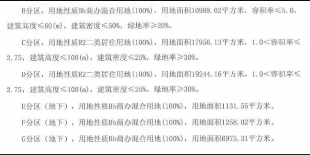 地块解析:该地块是今年出让的唯一一块位于大校场核心区域的地块,属于商业、办公、住宅混合用地,共分为A、B、C、D、E、F、G共7个地块,具体指标如下。