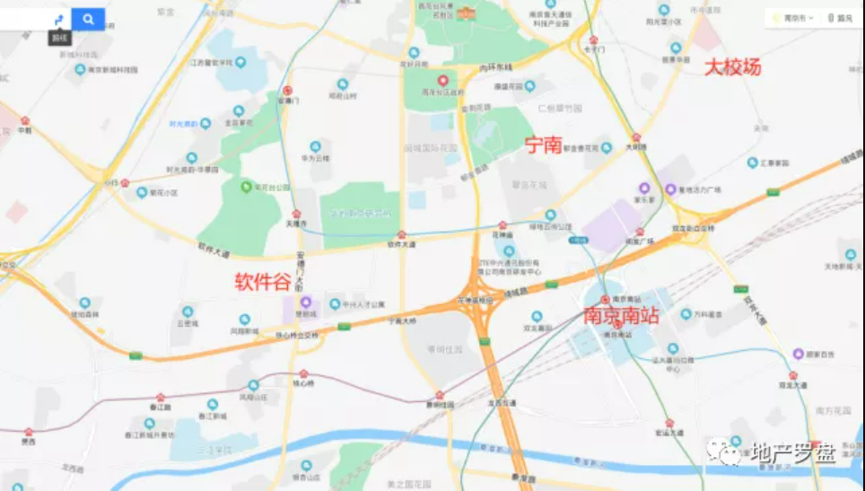 板块位置较好,南侧靠着南京南站,西侧靠近雨花产业重镇软件谷,东侧是当前热度“爆棚”的大校场板块,北侧是4A级景点雨花台风景区,区位优势得天独厚。