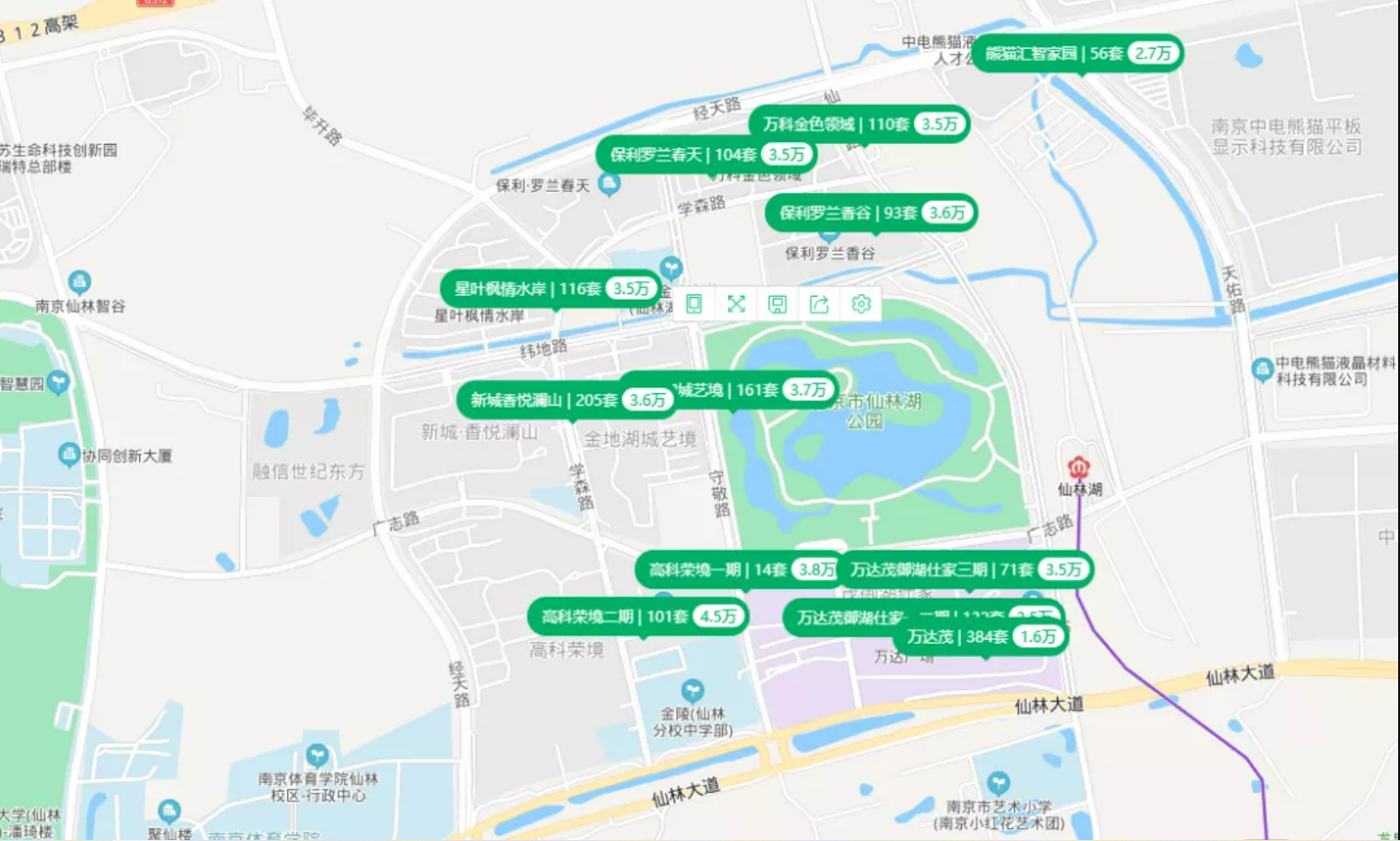此外,仙林湖的房源一直比较紧缺,在2021年1月之前,板块均价还维持在3.2万元/㎡左右,自从2021年1月22日半山云邸带学区销售后,板块房价猛的抬升6000元/㎡,天花板直接拉到3.85万元/㎡,不得不说这波操作和新玄武房价上涨如出一辙。