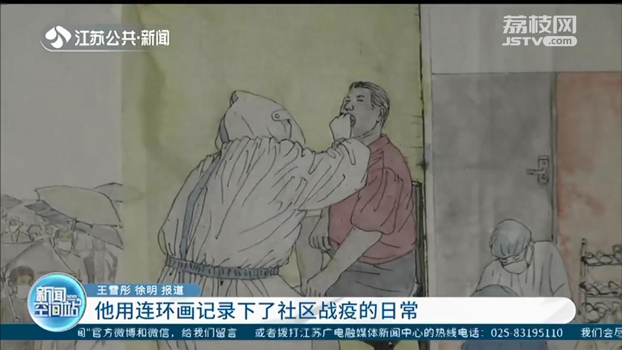 南京市鼓楼区湖南路街道青岛路社区工作人员姜俊说:“画得很逼真,其中有一幅画我给外国人用英语交流。因为他是到了机场之后变成了黄码,他过来的话有很多居民也是挺害怕。但是我们作为社区的工作人员不能够往后,只能往前冲。”