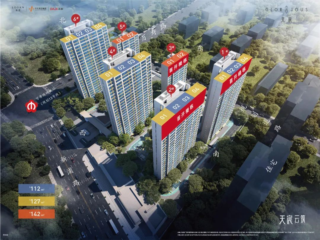 天宸云筑首开1#、2#、3#楼,户型建面约112㎡、127㎡、142㎡,验资290万。
