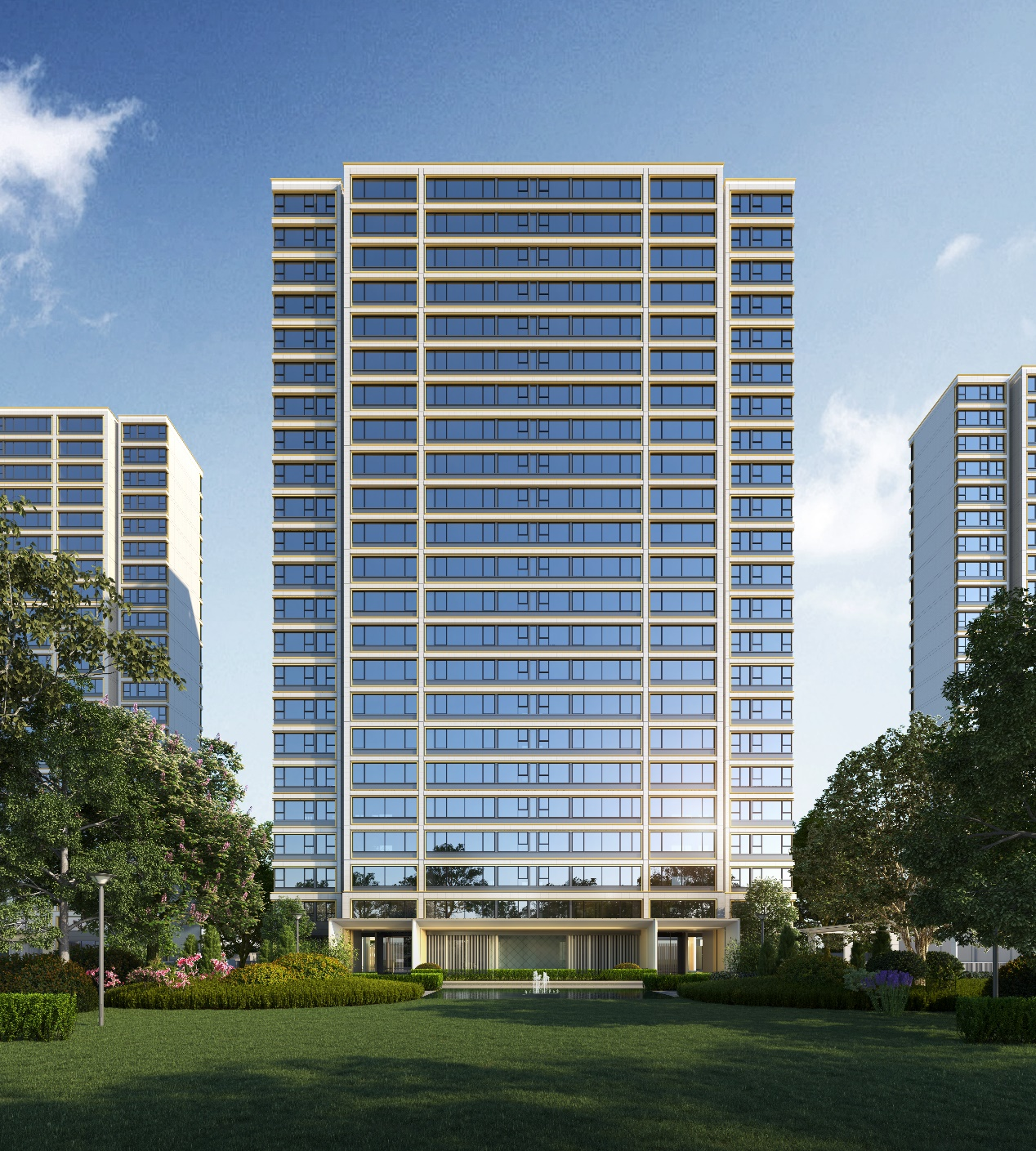 作为含着金钥匙诞生的“精工著作”,天宸江樾在建筑立面上做足了功夫。镜面立面搭配超高窗墙比,以浅色金属保温一体板,配以香槟金超纤细边框,品质立显。