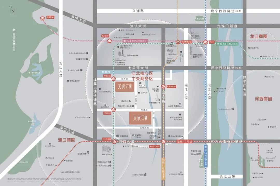 文娱配套上,国际金融中心(在建)、扬子江国际会议中心(在建)、江北图书馆(在建)、南京美术馆新馆(在建)、乔波冰雪世界(在建)、市民中心等城市地标连绵,江核的繁华皆为天宸所享。