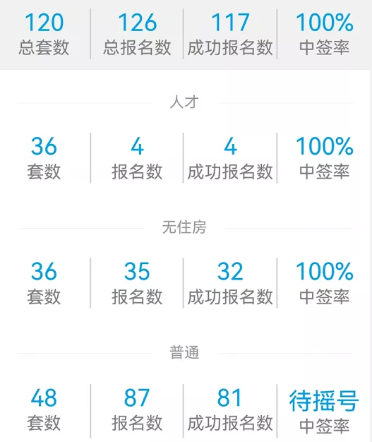 没想到最后开盘数据居然会如此惨淡,120套房源最终只成功报名117人,中签率直接飙升到100%,换而言之,就算这117人人手一套,还有3套房源无人问津。