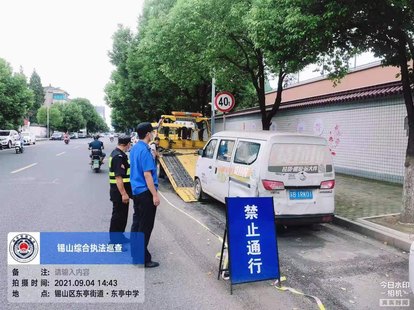 为保障前往东亭中学来上课学生的入学交通安全,东亭城管中队联合交警中队提前规划,制定行动方案,对新光路东侧的停车位开展清理行动。提前告知车主该处停车位将会被取消,通知车主移车,同时对长期占用公共车位的“僵尸车”开展拖车整治。此次联合执法共计拖离“僵尸车”18辆,铲除车位线300多米,拆除停车标牌3块,对该路段的交通有效畅通,保障校车无障碍停放。