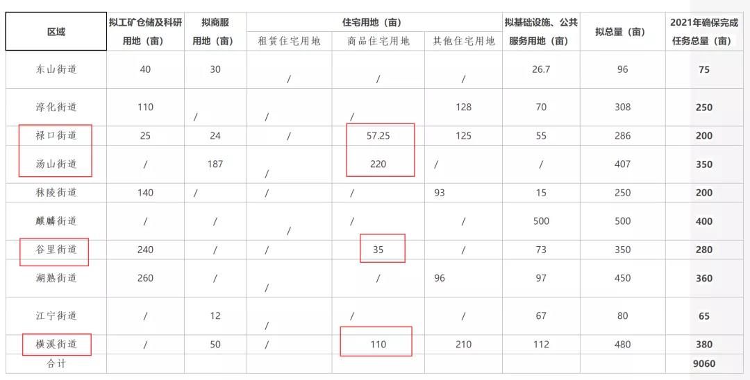 作为南京面积最大的区,江宁一直以来都是南京传统供地大户,每年土拍江宁贡献出的地块数量都一直名列前茅,也一直是南京新盘上市的重要生力军,就在今年年初南京市规划和自然资源局发布的2021年全市供地计划中,江宁以587公顷名列榜首,不仅高于南京中心城区各区之和,而且比江北等区都要高。