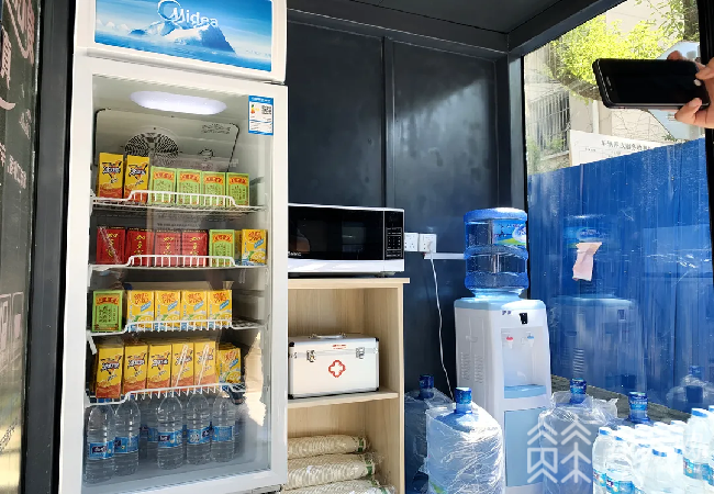 该驿站配备免费饮水机、免费冷饮、微波炉、充电器、急救箱等设施,为环卫工、建筑工、快递员等户外劳动者们提供一站式全方位暖心服务。户外工作人员可在中午12时至下午17时免费使用。
