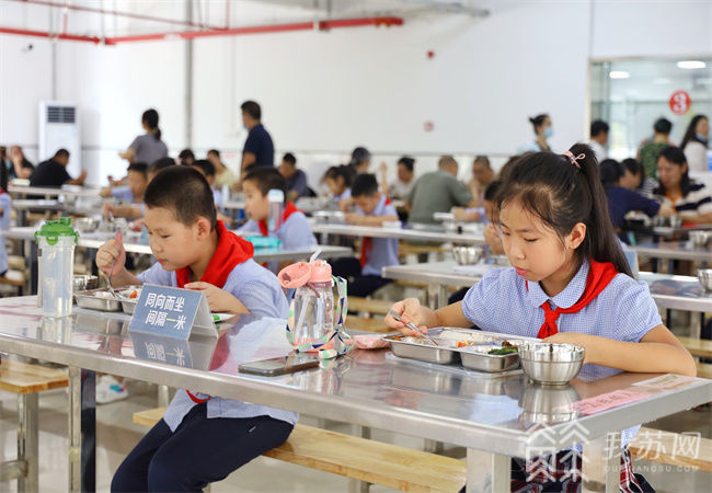 今年,无锡市滨湖区蠡园开发区推出“我为群众办实事”项目——“护苗”改造工程,总投资650万元,对蠡园中心小学食堂原有近2000平米的师生食堂进行了提升改造,以独立运营、设施完备、安全用餐为目标,完成食堂内部改造、消防配套改造、消控室增设、设施设备采购添置等建设内容,基础设施进一步改造升级。开学第一天,全校师生们在校园崭新的食堂大厅里,美美地享用了“开学第一餐”。