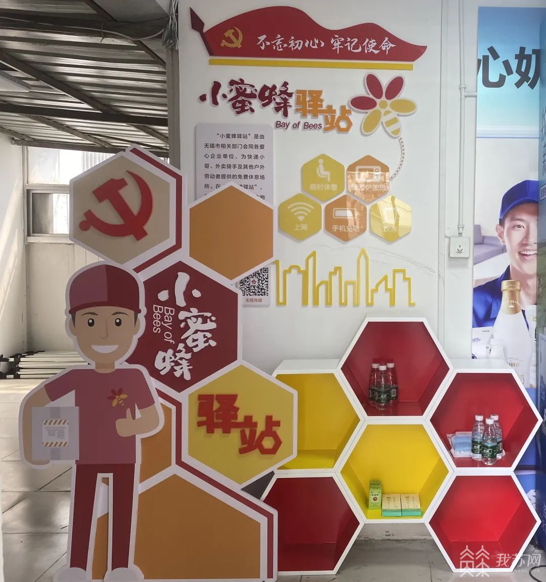 近日,宁南社区“小蜜蜂驿站”正式投入使用,驿站里配有饮用水、充电器、口罩等物品,还可以给“小蜜蜂们”提供茶水冲泡、无线网络、手机充电等各种服务,另设置休息区给“小蜜蜂们”歇歇脚。
