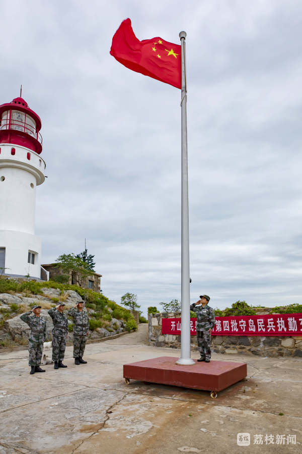 “我志愿加入开山岛民兵哨所执勤队伍,服从命令,听从指挥,遵章守纪,忠于职守,学习王继才先进事迹,传承王继才‘守岛卫国、爱国奉献’精神,忠实履行开山岛值守任务。”9月26日上午,连云港市灌云县燕尾港镇开山岛国旗广场,一声声铿锵有力的宣誓声响彻黄海孤岛上空。