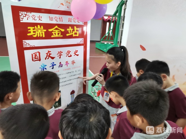 沉浸式打卡、趣味化学习……为迎接第72个国庆节,今天(9月30日)下午,在镇江新区举办的“国庆学党史 亲子嘉年华”活动中,五十多组亲子家庭在游戏中学习党史知识,传承红色基因。