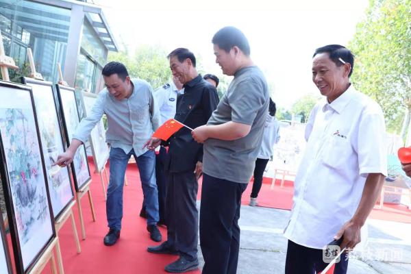 这些作品中,有书法,也有绘画,件件精雕细刻、浓墨重彩,画里字间都抒发了作者对祖国的无限热爱和对党的感恩之情。他们用笔墨书写了对党的无限忠诚、对家乡和大自然众生的无限思念和对家乡青山绿水的无限眷恋。当观众走进一幅幅还飘着墨香的艺术作品前,仿佛漫游在艺术的海洋中,无不竖指点赞,流连忘返。在书画展现场,还邀请柴成灿、宋立付等四位乡贤现场作画、书法,展示传统文化技艺,为活动助威加油。