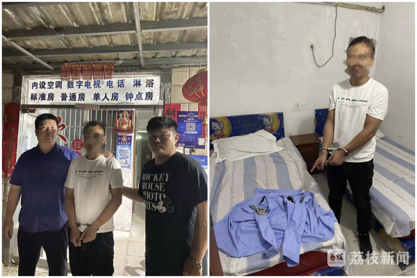 民警立即将该情况汇报指挥中心,联系润州分局刑警大队,依托当事人描述及监控等条件,开展搜索研判。10月2日凌晨1时许,分局合成作战中心反馈:该男子最后出现在王家巷。七里甸派出所联合润州分局刑警大队立即出发赶赴王家巷。凌晨2时许,民警在某小旅社内找寻到睡着的嫌疑人倪某,并在床下搜寻到该男子的“警服”。