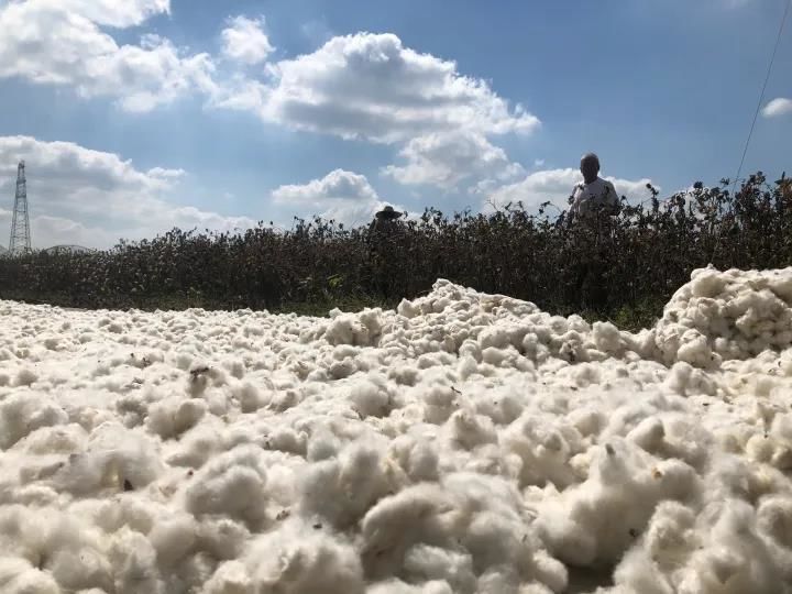 金穗卷起千层浪,又到一年丰收时,位于市区观音山街道的鸡脚棉试验田也迎来采摘季。9月30日跟随退休高级农艺师曹云泉走进田间,五六名工人正忙着采摘。湛蓝的天空下,雪白的棉花与白云呼应交织,传递着收获的喜悦。