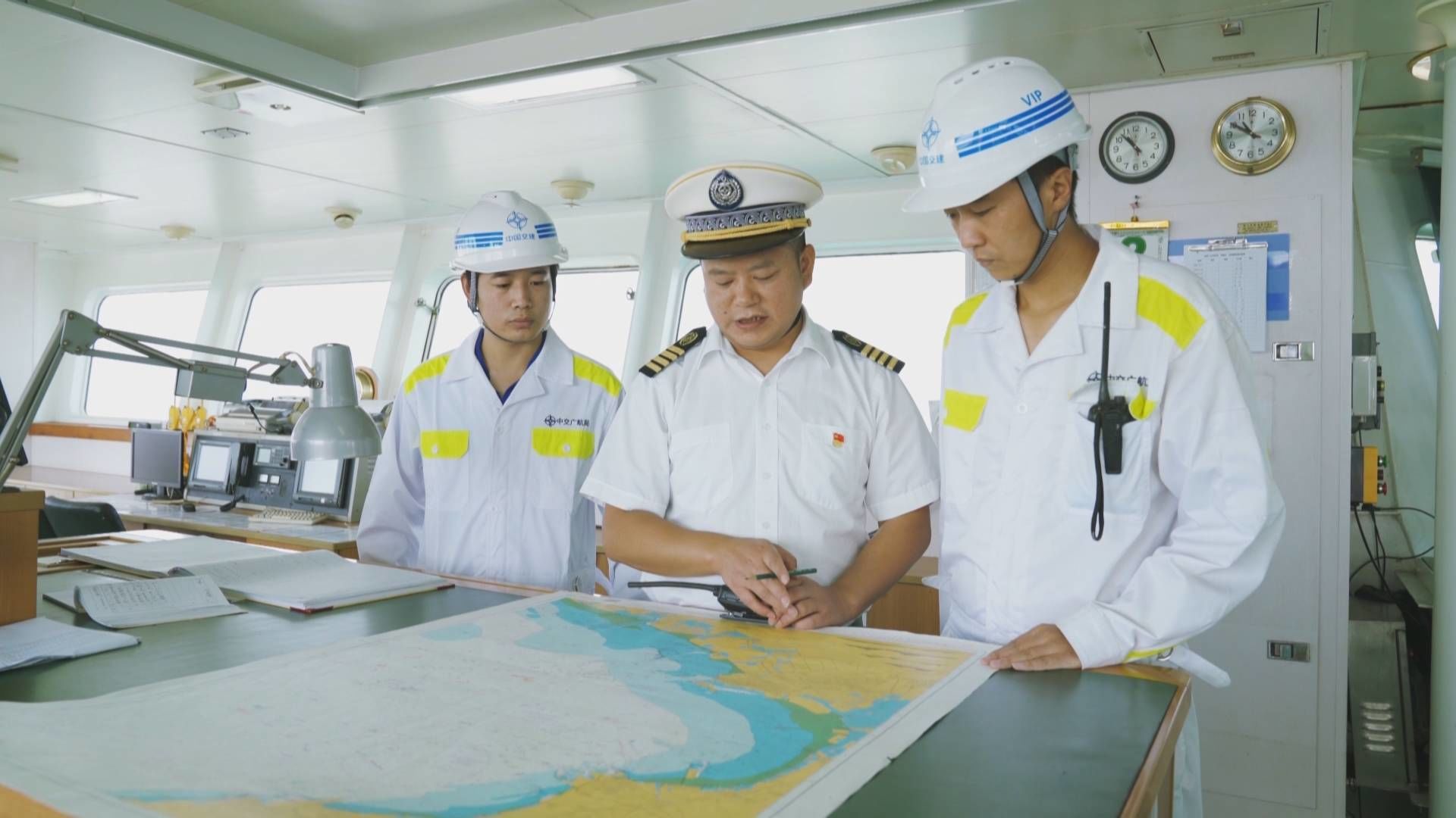 上午,记者登上“浚海2”轮时,船长杨治国正在和船员一起进行黏土艏吹作业。老家湖南的杨治国,今年是他在连云港过的第三个国庆节。2017年11月,他就带领中交广航局的“浚海2”轮投入到连云港港30万吨级航道二期工程的建设。这次是航道二期工程第一次将疏浚土艏吹上岸。杨治国告诉记者,粘土艏吹不仅需要针对不同土质调整施工工艺,同时对施工船舶硬件设备要求较高,二是航道内施工时船舶通航密集,对航道安全通行提出了更高的要求。