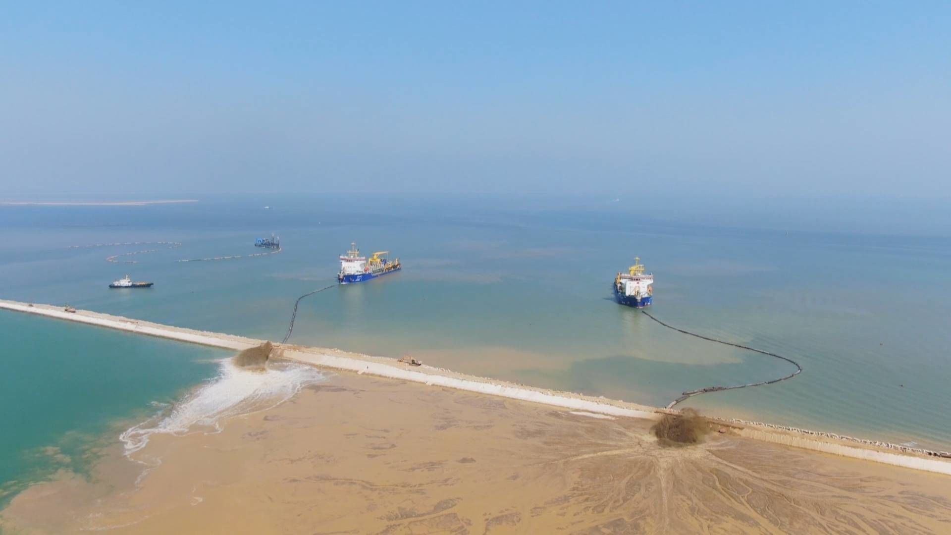 连云港港30万吨级航道二期工程徐圩航道分4个标段实施,其中H2.1标和H2.2标已完工。目前,正在实施的H2.3标和H2.4标,主要采用艏吹并结合少量外抛的施工工艺。连云港港30万吨级航道建设指挥部针对硬质粘土难艏吹的情况,优化施工组织,合理统筹船舶进场,将大部分硬质粘土直抛进徐圩集装箱围堤内,从而减轻了后续艏吹的压力。截至目前,航道二期工程累计完成投资57.3亿元,占总投资的74%,累计完成疏浚量1.64亿方。连云港港30万吨级航道建设指挥部常务副指挥蔡辉介绍,“十一”期间,一共有五条大型挖泥船正在施工,按照计划将在明年六月底前完成全部的施工任务。建成后将有力促进连云港市的经济腾飞,特别是对炼化基地建设,30万吨原油码头的顺利投产使用具有十分重要的意义。
