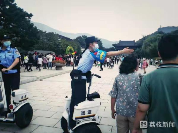 连云港市花果山、连岛大沙湾、海上云台山、渔湾、青松岭森林公园等热门景区,始终是游客、网红集中的打卡地,日接待游客量达20多万人次、进出车辆超5万辆次。为做好各大旅游景区的安保、服务工作,连云港市公安局将机关警力下沉一线,驻点包干、责任到人,全体民警、辅警天亮到岗、深夜下岗,从景区出入口,一路到停车场、再到各个景点,头顶闪亮的警徽坚守在游客身边。旅游警察踩着电动平衡车在游客间穿梭,做好宣传提醒,接受报警求助,为游客提供指引服务,仅花果山景区日均接受群众报警求助即达百余起,为群众寻找丢失财物、走失孩童做好事60余件(次)。