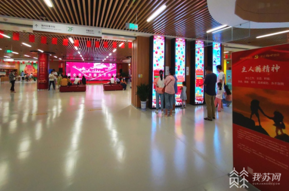 据介绍,连云港市图书馆依托场馆优势,在一至六层打造6处党史学习教育专区,上架近万册红色图书,满足不同年龄、不同类别、不同层次读者多元化的阅读需求。同时以书香大厅、少儿红色电影展播厅、党建活动室、清风书苑为主题教育阵地,配合馆内2块电子大屏和26块电视屏循环播放党史宣传视频及红色经典儿童电影,智能机器人唱红色歌曲、讲红色故事,营造浓厚氛围,强化教育功能,引领广大读者铭记光辉历史,传承红色基因。
